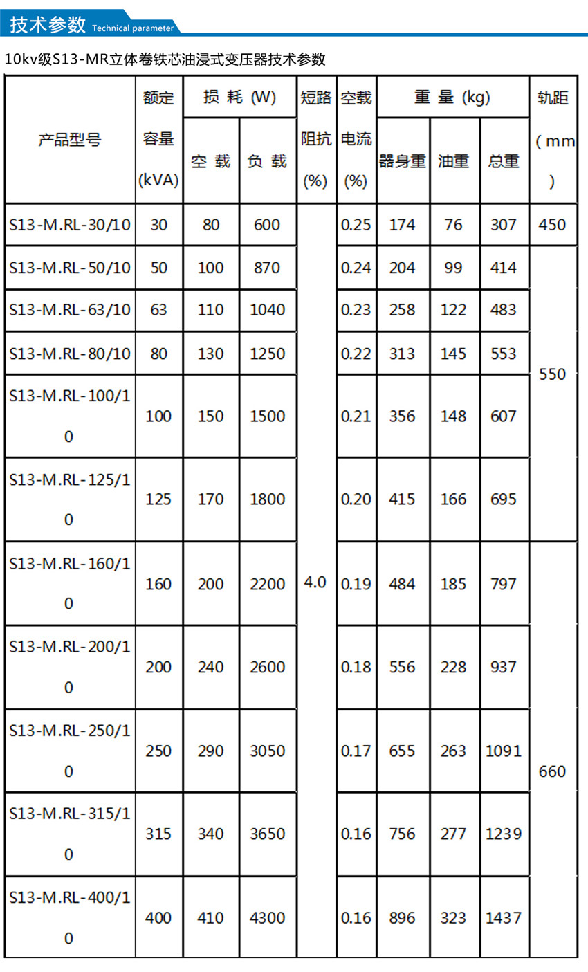 . S11-M.RL-/10-20 、S13-M.RL-/10-20 立體三角形卷鐵心變壓器有10kV 及20kV 兩種電壓兼容的產(chǎn)品系列,在10kV 電網(wǎng)向20kV電網(wǎng)過(guò)渡更新時(shí)期.極大的方便了用戶(hù)。